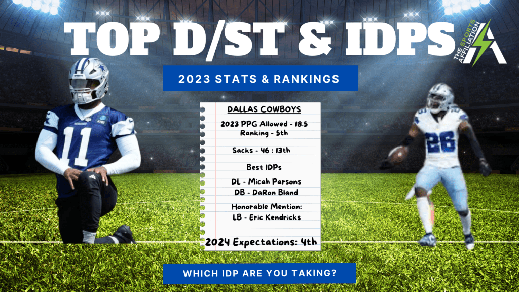 The Cowboys will also have an offense going all out. Who knows what the future holds for Head Coach Mike McCarthy, quarterback Dak Prescott, and wide receiver CeeDee Lamb, but they will help the defense again this year. It starts with their playmakers, who happen to be excellent IDPs.