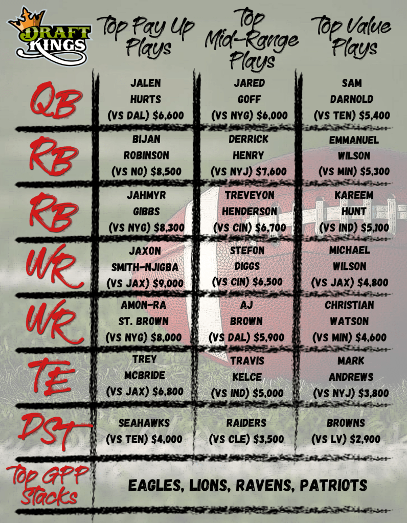 Fantasy Football Advice, Football, Sports Betting NFL DFS Week 12 Cheat Sheet | DraftKings Main Slate Date: November 21, 2025Author: Coach Craig 0 Comments Share this: Click to share on X (Opens in new window) X Click to share on Facebook (Opens in new window) Facebook Like Loading... Related