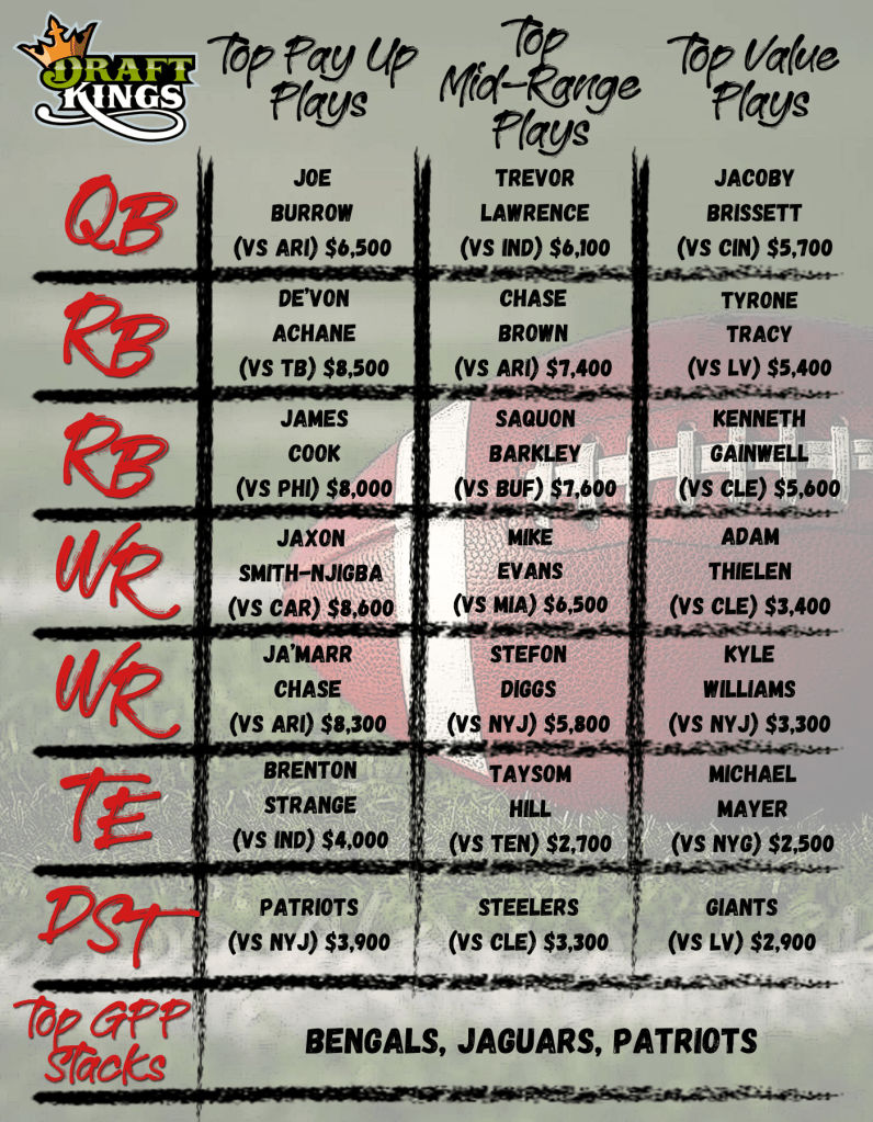 Fantasy Football Advice, Football, Sports Betting NFL DFS Week 17 Cheat Sheet | DraftKings Main Slate Date: December 27, 2025Author: Coach Craig 0 Comments Share this: Click to share on X (Opens in new window) X Click to share on Facebook (Opens in new window) Facebook Like Loading... Related